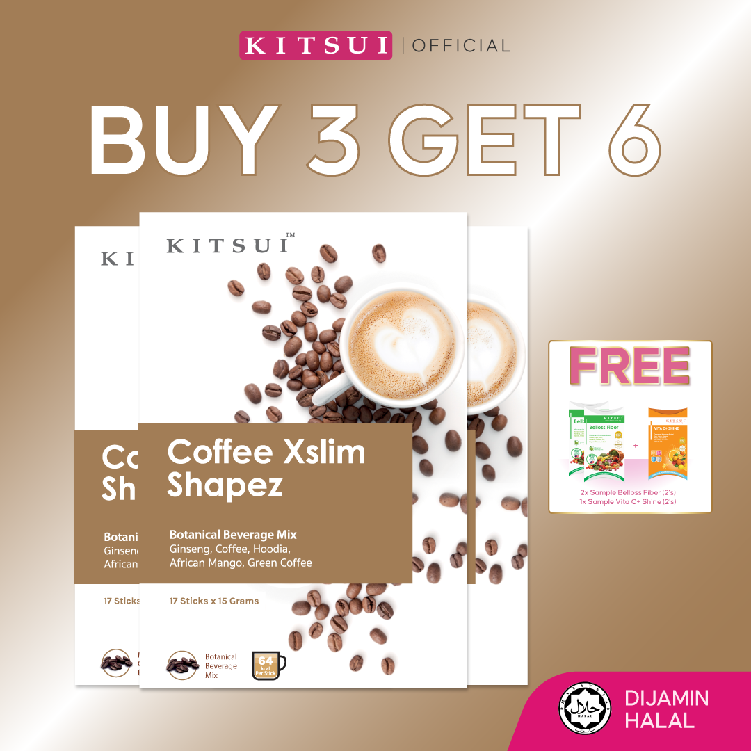 [BUY 3 GET 6 SALES] KITSUI Coffee Xslim Shapez x3 [Free Sample Whitie Snow 2's X2 | 1x Belloss Fiber 2's]