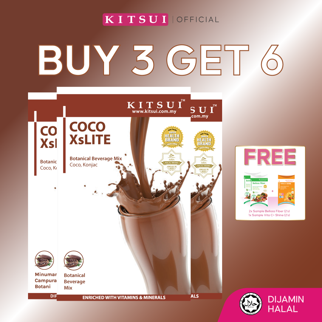 [BUY 3 GET 6] KITSUI Coco Xslite x3 [FREE 1x Vita C+Shine 2's + 2x Belloss Fiber 2's] Supplement | Halal | Minuman Coco