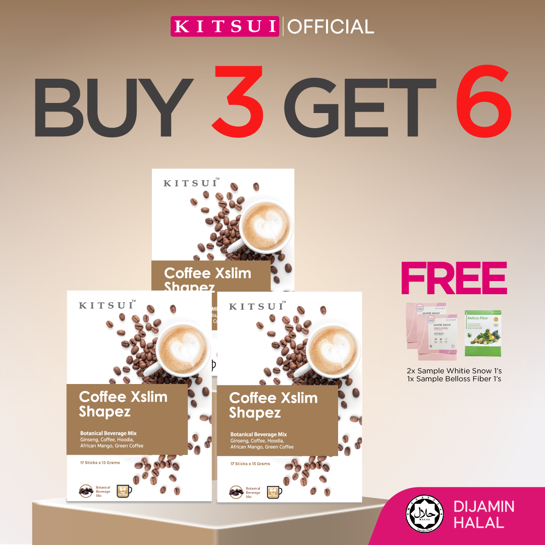 [BUY 3 GET 6 SALES] KITSUI Coffee Xslim Shapez x3 [FREE 2x Whitie Snow 1's + 1x Belloss Fiber 1's]