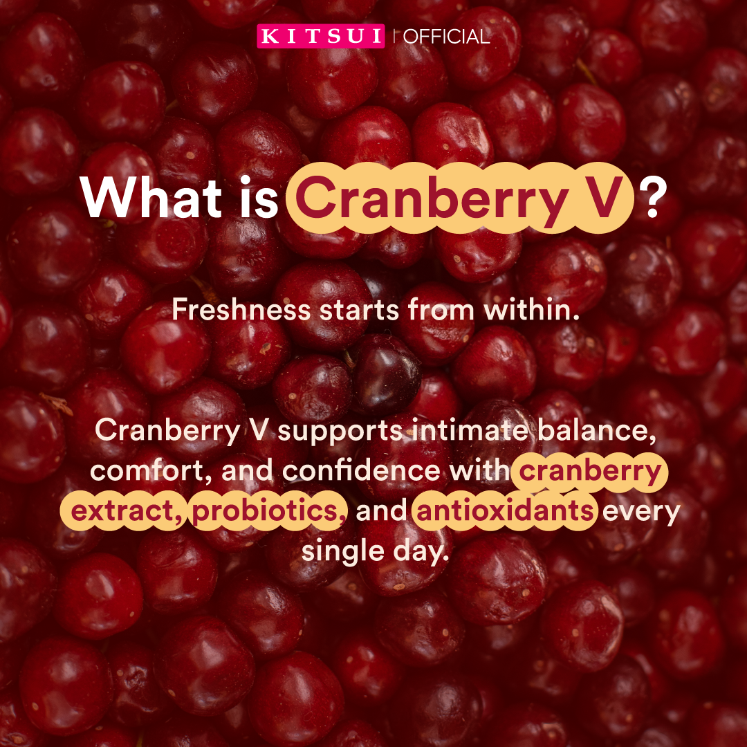 Cranberry V ialah suplemen harian khas untuk wanita yang diformulasikan untuk menyokong kesejahteraan intim, keseimbangan, dan rasa segar berpanjangan. Diperkaya dengan ekstrak cranberry pekat, probiotik, dan antioksidan semula jadi, ia membantu menyokong keseimbangan intim serta keselesaan harian wanita.