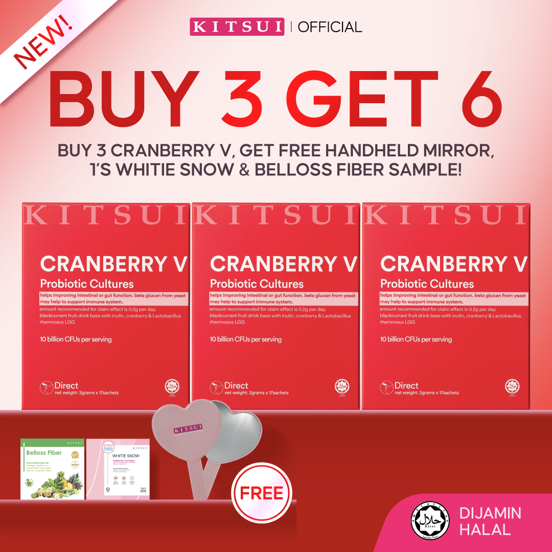 [BUY 3 GET 6] KITSUI Cranberry V x3 [FREE 1x Kitsui Handheld Mirror + 1x Belloss Fiber 1's + 1x Whitie Snow 1’s]