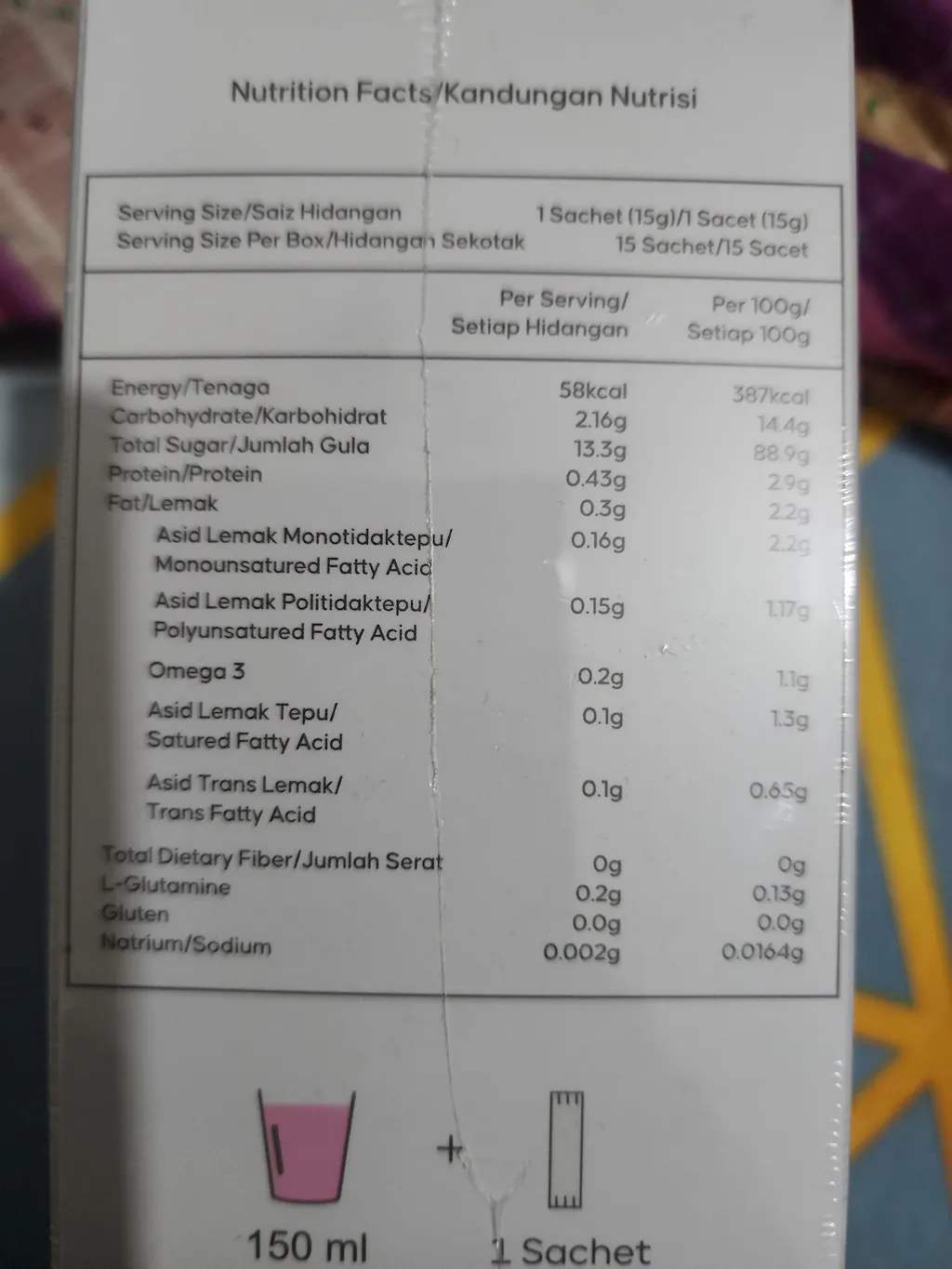 Campurkan 1 sachet (15g) ke dalam 100–150 ml air suam atau sejuk. Goncang dan minum serta-merta.
