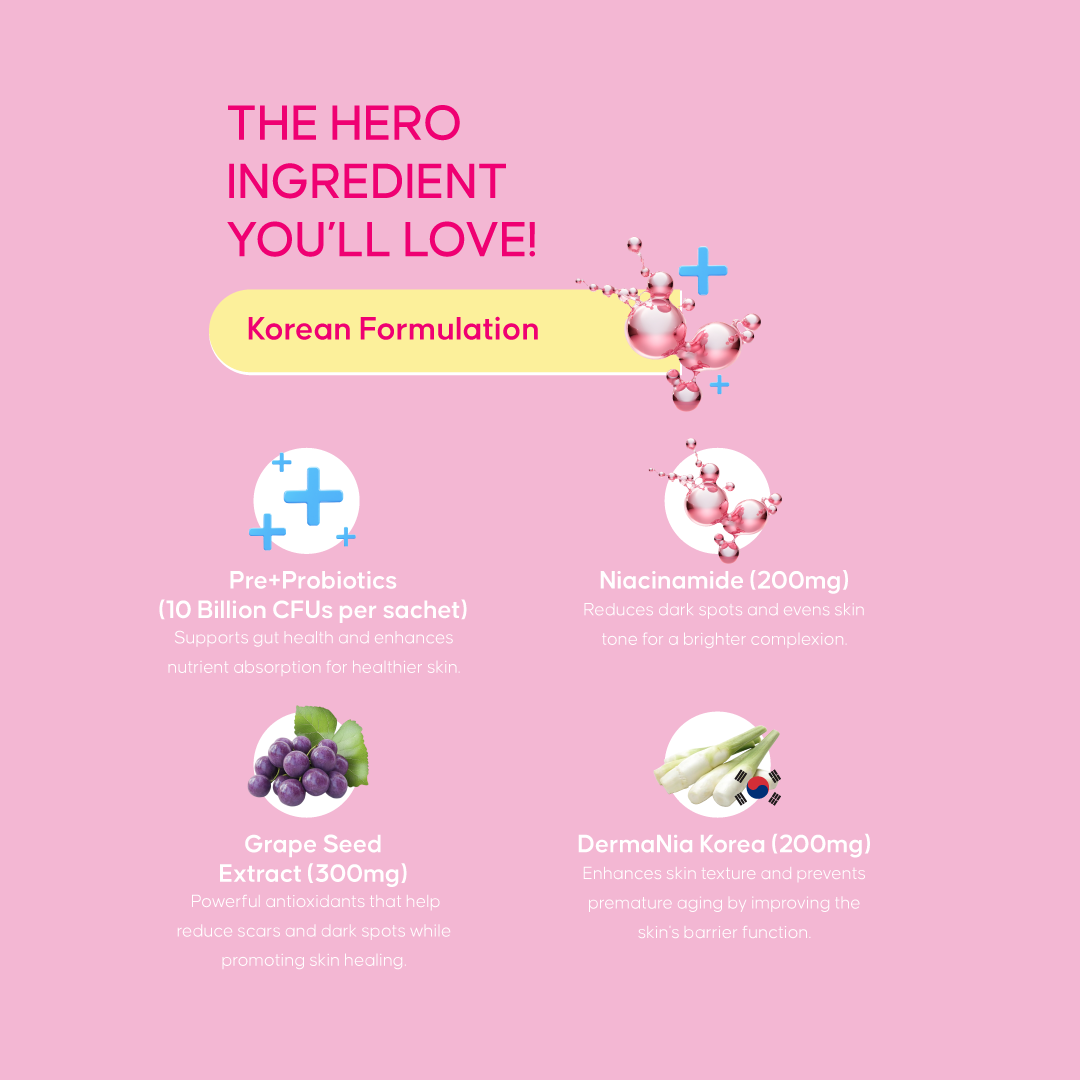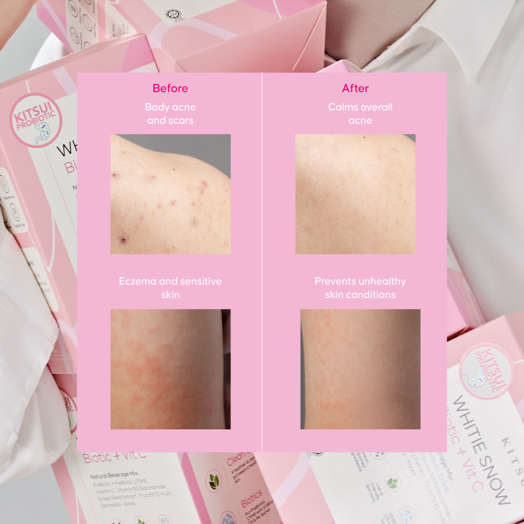 Probiotic + Prebiotic: Supports skin barrier and reduces inflammation