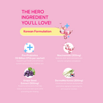 Ingredients like Probiotics + Prebiotics, Grape Seed Extract, and Vitamin C.