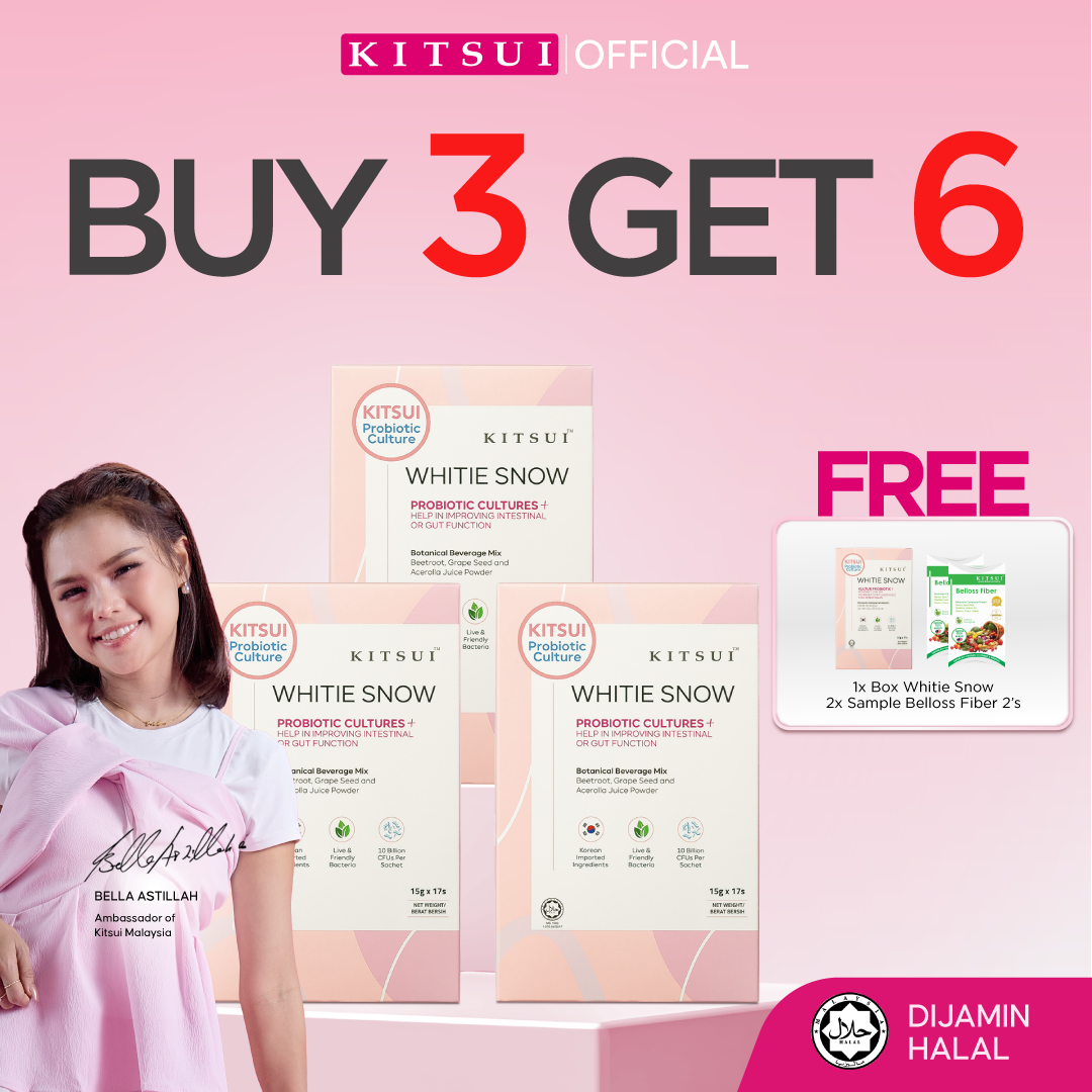 [BUY 3 GET 6] KITSUI Whitie Snow x3 [FREE 1x Whitie Snow + 2x Belloss Fiber 2's] Supplement | Halal | Minuman Berperisa Beri Dengan Vitamin & Probiotik | Kulit Berseri